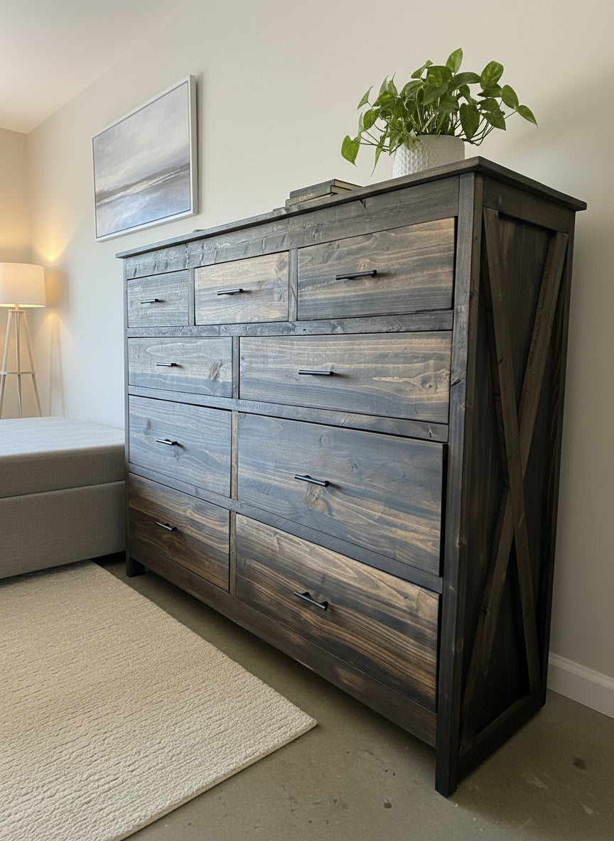 Complete your custom bedroom order with our matching dresser. Designed for functionality, organization, and style, our dressers are the perfect addition to your space. Choose the perfect fit for your bedroom and elevate your storage options.